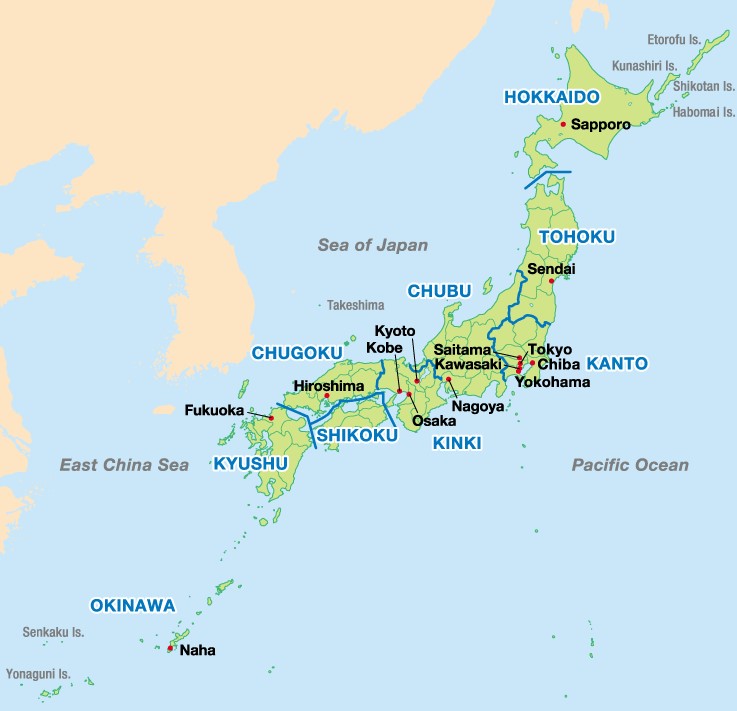 Japan is divided into eight regions (see map below). Our list is organized by region.